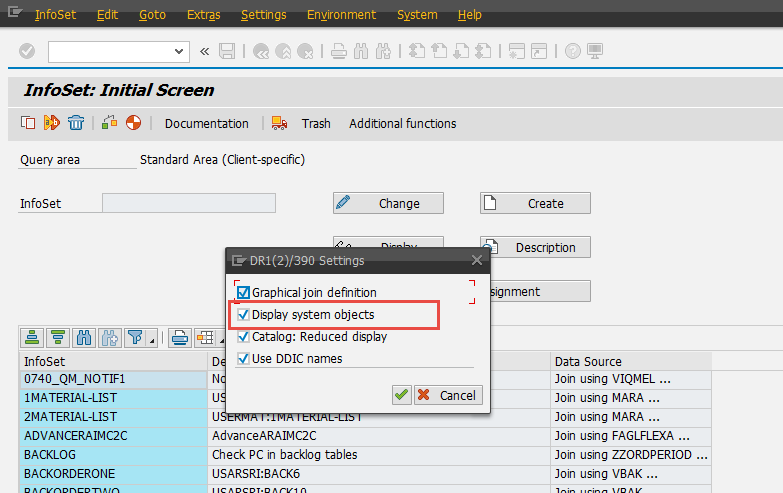 To set to true the display flag enter to SQ02 ==> menu settings ==> Option Settings